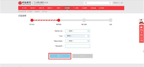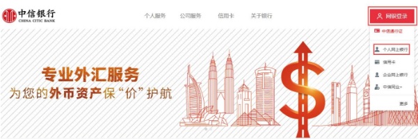 1.進入中(zhōng)信銀行網站(www.citicbank.com),點擊“網銀登錄”-“個人網上銀行”,登錄網銀;