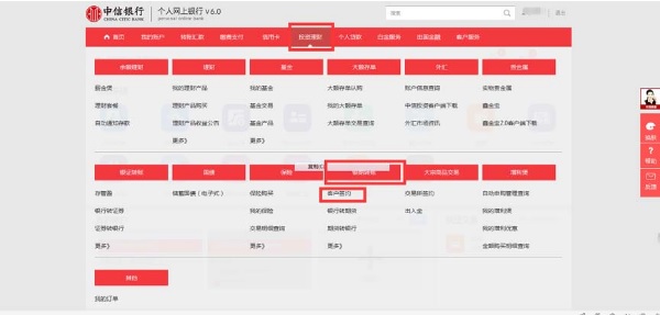 2. 登錄後選擇“投資理(lǐ)财”-“銀期轉賬”-“客戶簽約”;